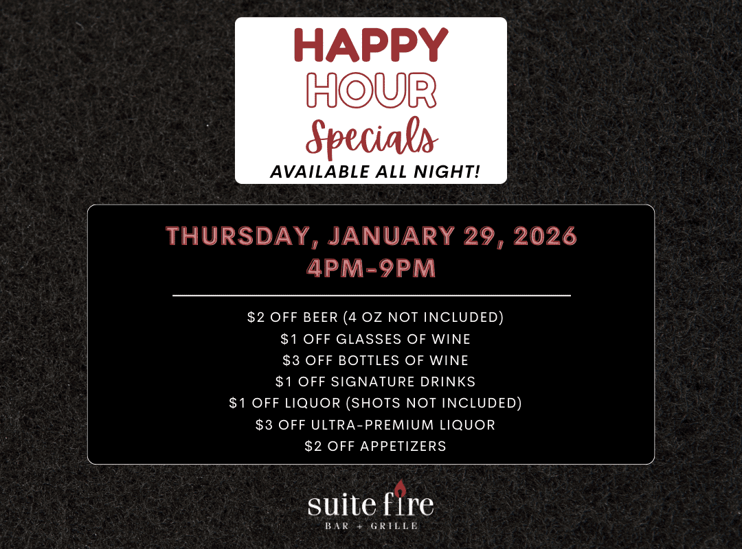 SAVE THE DATE for HAPPY HOUR SPECIALS: Available all Night!