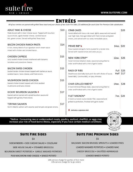 Download Suite Fire Dinner Menu
